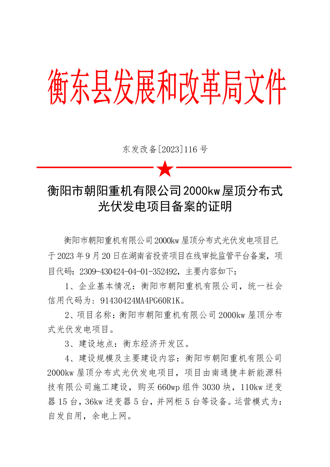 朝陽集團(tuán)是一家具有社會責(zé)任感的企業(yè),積極響應(yīng)國家綠色雙碳發(fā)展的號召,一直在綠色產(chǎn)品和綠色能源上不斷探索和創(chuàng)新,致力于推動環(huán)保產(chǎn)業(yè)的發(fā)展。公司從源頭的設(shè)計開發(fā)上就著重綠色環(huán)保、節(jié)能減排。2023年8月集團(tuán)的電機(jī)產(chǎn)品就獲得了“國家綠色設(shè)計產(chǎn)品”和“湖南省綠色設(shè)計產(chǎn)品”榮譽(yù)。公司這次投入巨資建設(shè)光伏項目,又在節(jié)能、綠色能源上走在了區(qū)域前面。