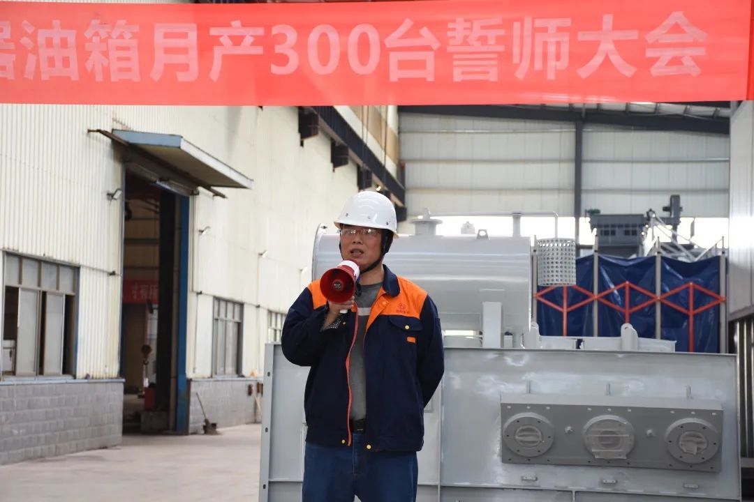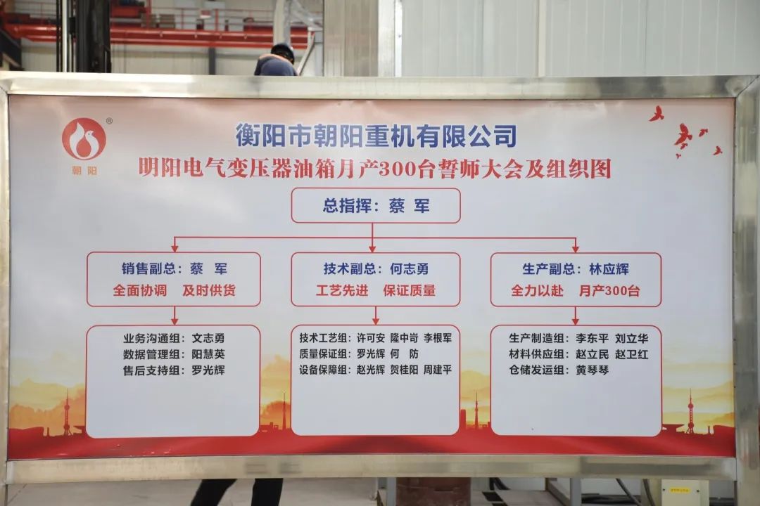 今天的宣誓在我們每個人的心中種下一個火種,將我們?nèi)w朝陽人團結(jié)一心、齊心協(xié)力、精益求精,不斷創(chuàng)新,不斷突破,服務(wù)好客戶,提升好自身。以做好明陽電器月供300臺變壓器油箱為起點,攻艱克難,持續(xù)追求卓越,不斷超越自我,做出一個客戶滿意、員工幸福、茁壯成長般“驕陽似火”的朝陽集團。
